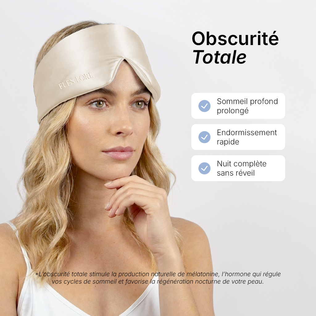Le Masque de Nuit ELEN LORÉ offre une couvrance à 100%, bloquant efficacement toute lumière extérieure. Son design enveloppant crée un véritable cocon d'obscurité pour un sommeil profond et réparateur, même en plein jour.