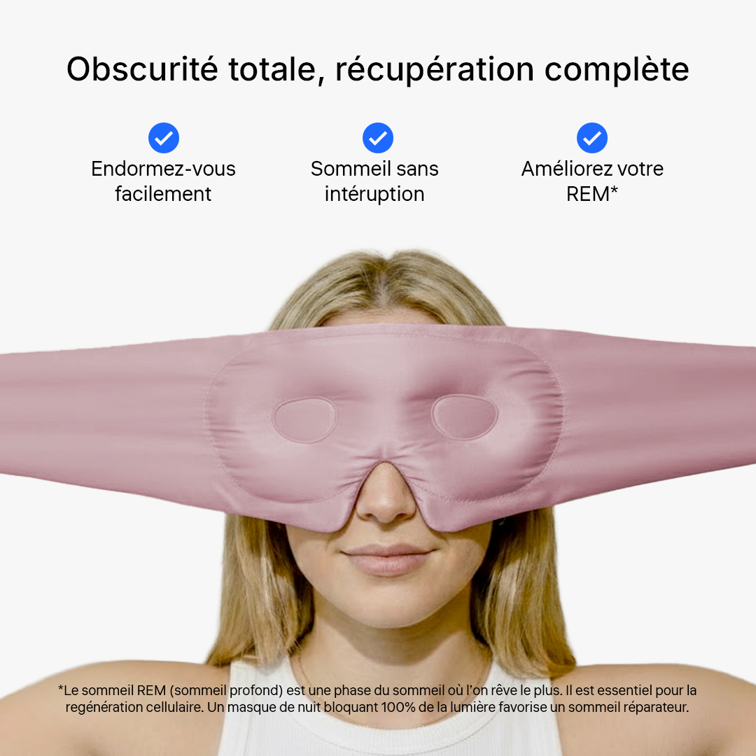 Oui, peu importe votre position de sommeil (dos, côté, ventre). Grâce à son design enveloppant et sa fermeture velcro sécurisée, le masque ne glisse jamais et ne se détache pas, même si vous bougez beaucoup pendant la nuit.
